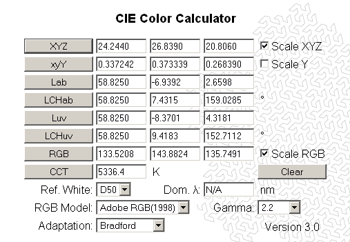convertendo in RGB con lo strumento all'indirizzo: http://www.brucelindbloom.com/index.html?Eqn_RGB_XYZ_Matrix.html