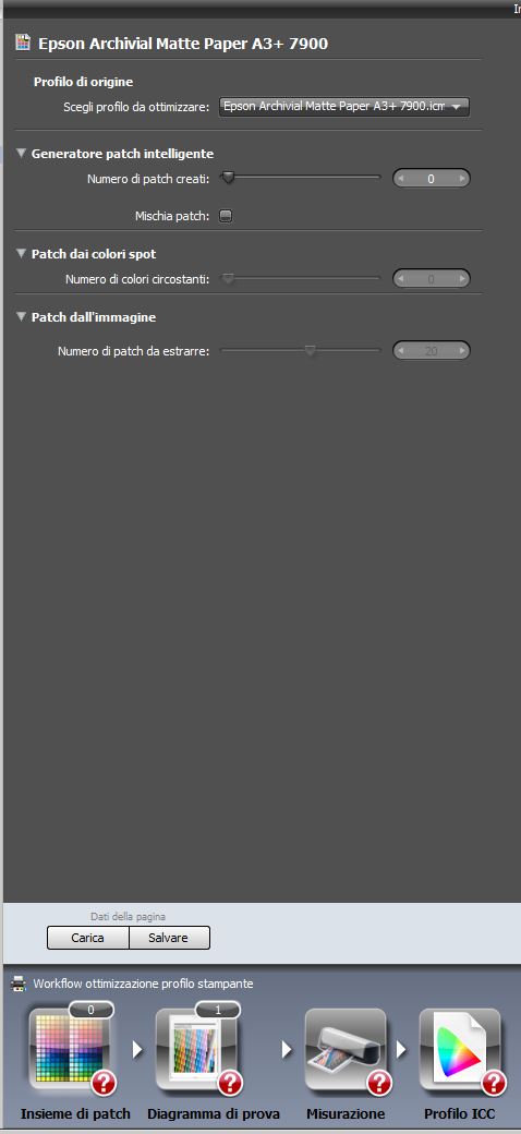 Domanda: Quale n. di patch devo impostare? Mi aspettavo fosse il generatore "intelligente" a suggerirlo, in base al profilo scelto per l'ottimizzazione. Invece mi pare debba essere l'utente (nel mio caso un po' tonto) a indicarlo. Il mio profilo prevedeva circa 1700 patch. Come minimo immagino che il n. debba essere minore... Mi è più chiaro l'uso di colori spot, immagino scelti in base a quelli che si ritiene siano critici.